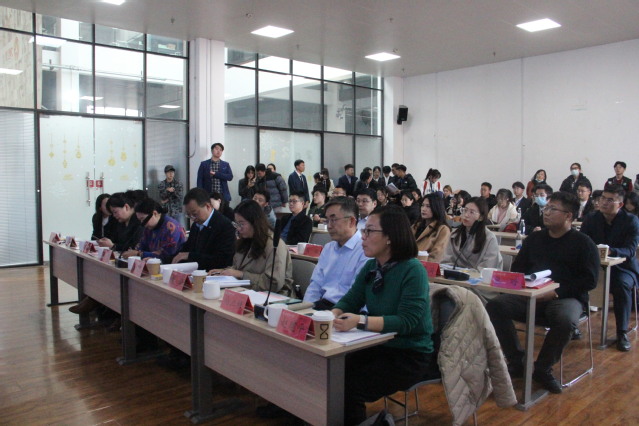 教务处副处长牛学东、学生工作部副部长李萍、学生工作部副部长兼大学生就业指导中心主任孙钦泉等领导,部分企业评委参加。