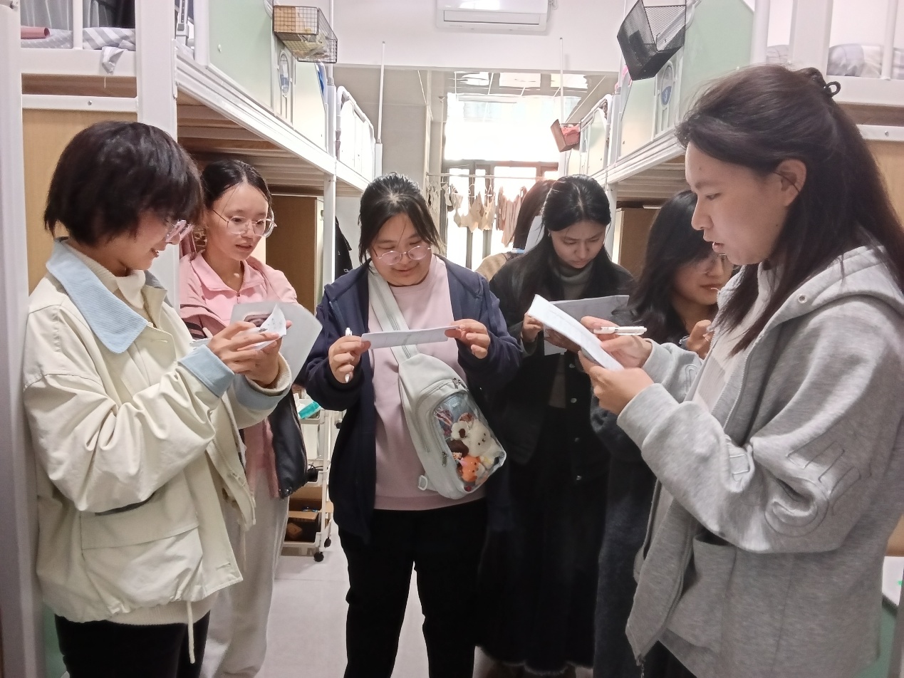 参与活动的学生首先在6号宿舍楼前集合,由工作人员讲解此次活动的基本流程并分发打分表。随后,各评分成员进入到自己所安排的楼层,对各宿舍内务情况进行打分,评选出优秀宿舍。