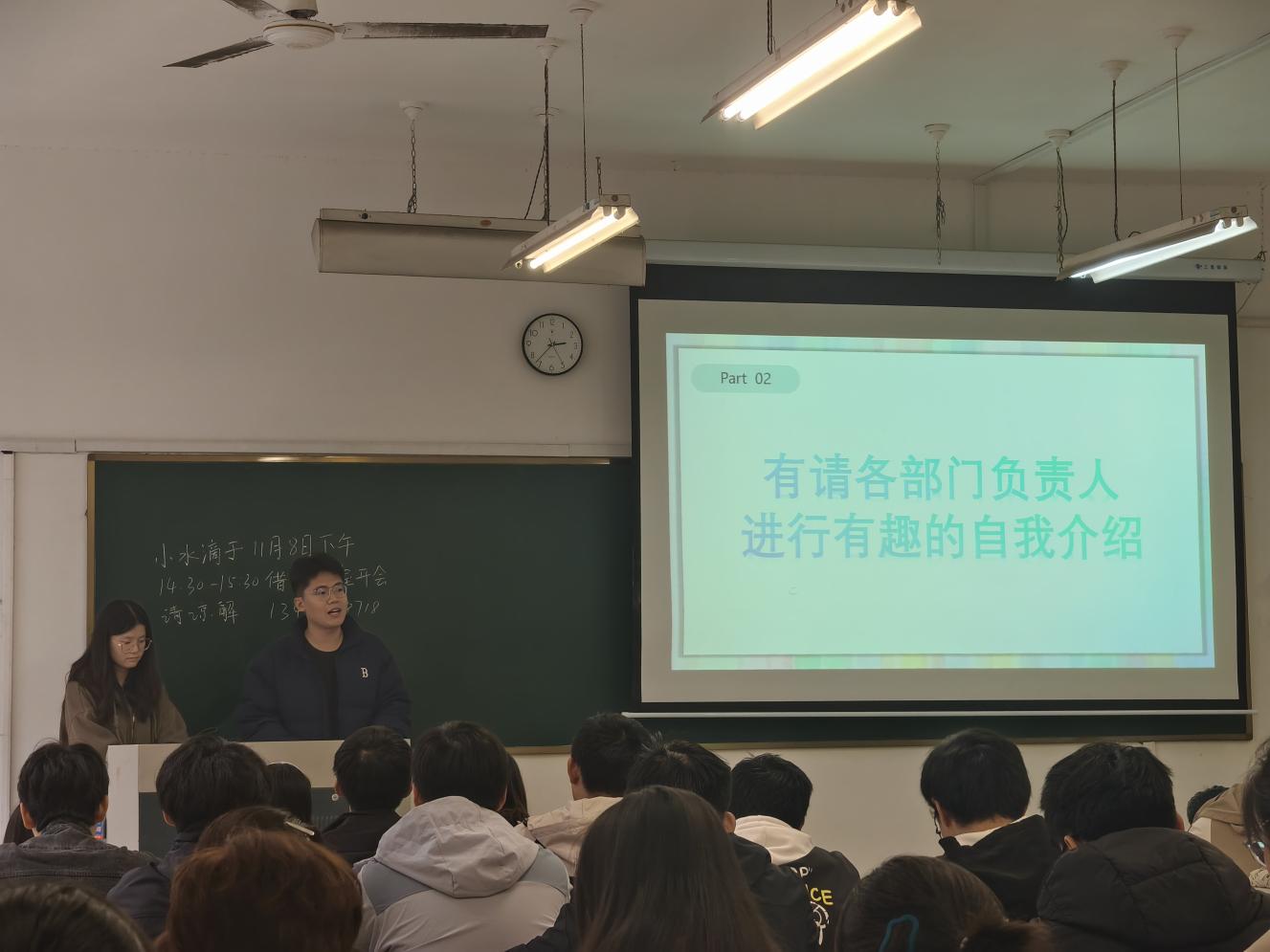 11月8日下午,小水滴公益联盟迎新会在9号教学楼207教室开始。此次迎新会以“促进新老成员相识相知、明晰部门职能”为核心目标,为联盟新学年公益事业的有序开展搭建基础,联盟新老成员参与其中。