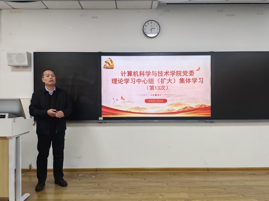 11月25日上午,计算机科学与技术学院组织理论学习中心组(扩大)开展了集中学习,重点围绕《中共山东理工大学委员会关于推进党建与业务融合发展的指导意见》《中国共产党纪律处分条例》《习近平谈治国理政》第五卷“加快建设教育强国”专题开展学习研讨。学院党委理论学习中心组成员以及学院全体党支部书记参与学习,会议由学院党委书记田兆富主持。