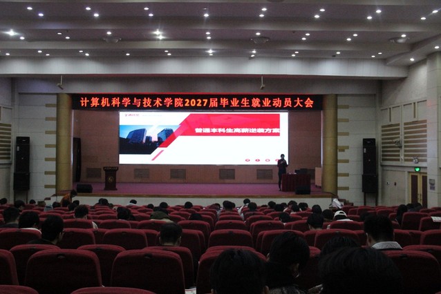 11月22日下午,计算机科学与技术学院于3号报告厅召开2023级学生就业动员会。会议由学院党委副书记、纪委书记钟丽霞主持。4家知名企业代表及2023级学生共同参与,围绕考研就业选择、行业趋势、实训机会等核心话题展开深入交流。
