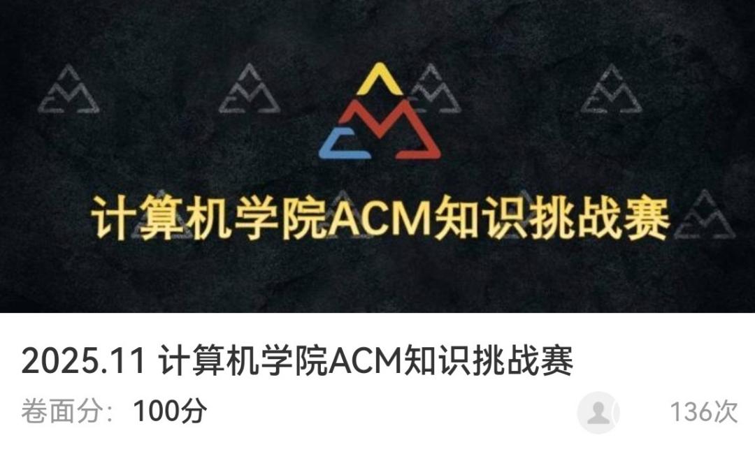 11月21日至11月23日,由计算机科学与技术学院ACM协会主办的线上ACM知识挑战赛顺利举行,此次比赛旨在激发学生对算法与编程的兴趣,提升实践能力,并为学校参加更高级别程序设计竞赛选拔和储备人才。