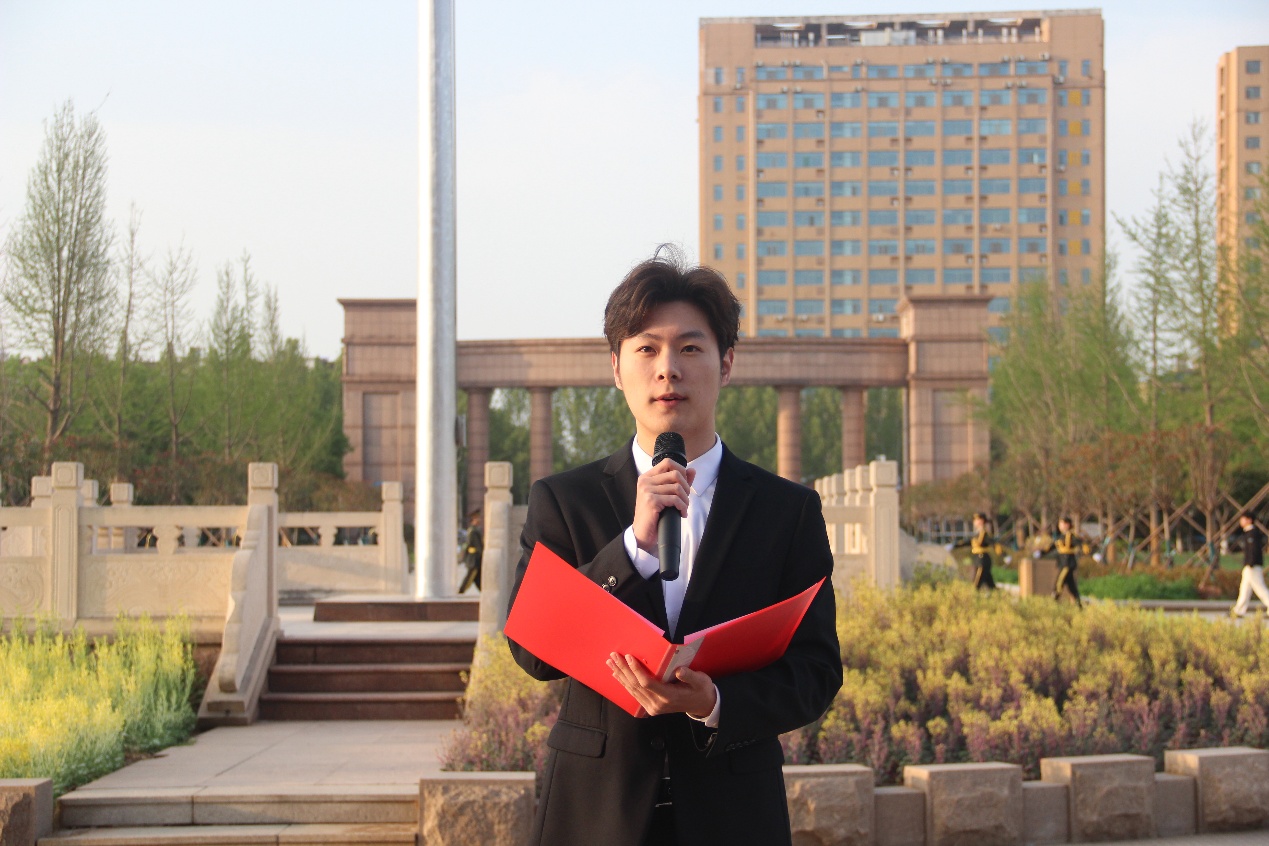 学生代表潘浩雨作国旗下演讲,号召全体同学坚定理想信念,锤炼专业本领,将个人成长融入国家发展与校园建设,以青春之我、奋斗之我,争做有理想、敢担当、能吃苦、肯奋斗的新时代好青年。