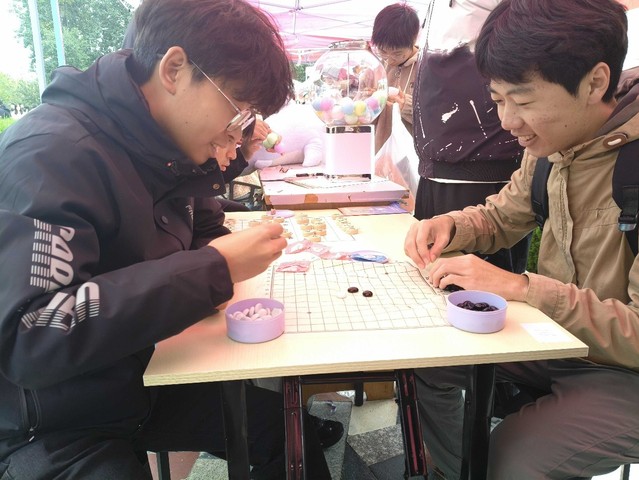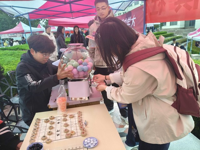 纳新活动正式启动后,前往安弈棋社展位咨询的同学络绎不绝。社团负责人及骨干成员耐心回应每一位同学的疑问,详细介绍社团的组织架构、分层培训体系以及新成员的加入流程和权益。现场设置的“下棋赢奖品”和抽奖两大环节有序推进,“下棋赢奖品”环节按棋类分组开展对弈,参与同学凝神思考、谨慎落子,每局对决结束后,获胜者可直接领取对应等级的奖品,现场秩序井然。抽奖环节每有报名开展一次,通过随机摇号的方式确定中奖名单,中奖同学凭参与凭证领取礼品,持续带动现场参与热情。不少同学在体验完互动环节后,踊跃扫码加入社团纳新群,现场氛围热烈。