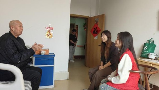 互动环节中,志愿者们各展所长。会麻将的志愿者与老人围坐在桌前,笑声不断,吸引老人前去观看。会音乐的同学唱起起经典老歌,老人们跟着旋律轻轻哼唱,现场气氛温馨融洽。更多志愿者围在老人身边,听他们讲述过去的故事,帮忙按摩放松。