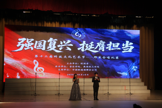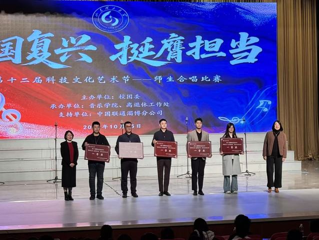 10月25日下午,山东理工大学第十二届科技文化艺术节“强国复兴 挺膺担当”师生合唱比赛于大学生艺术中心礼堂圆满落幕。计算机科学与技术学院合唱团凭借精湛演唱与创新编排,从众多参赛队伍中脱颖而出,斩获一等奖。