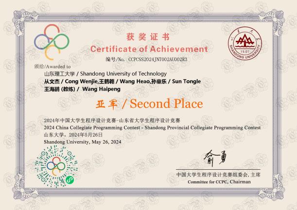 第10届中国大学生程序设计大赛(济南邀请赛)金牌
