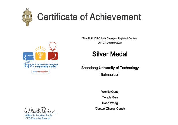 第49届国际大学生程序设计大赛亚洲区域赛(成都站)银牌